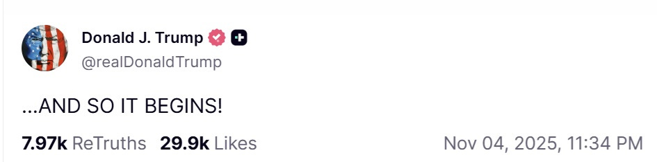 President Trump is prepared for 2026 and the fight for America, posting on Truth Social: “And So It Begins.”