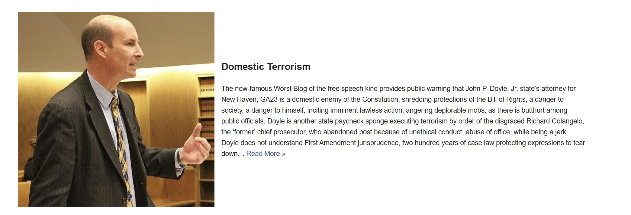 (NEW HAVEN, CT) – Paul Boyne, 64, is a journalist who’s covered family court (among other things) for the last decade. He’s on trial for 18 felony counts over inflammatory blog posts targeting Connecticut judges. Boyne doesn’t deny it; he justifies it. Boyne says Connecticut Judges Adelman, Grossman, Moukawsher, Stewart, and other members of the judiciary covered for credibly-accused pedophile Christopher Ambrose, among other crimes against “God, country, and natural law.”