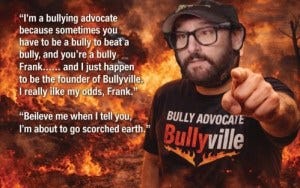 “I’m a bullying advocate because sometimes you have to be a bully to beat a bully… and I just happen to be the founder of Bullyville. I really like my odds.”