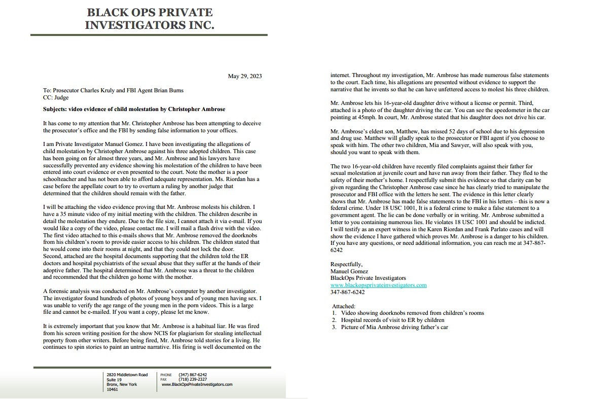 One investigator who tried to help, retired NYPD detective Manuel Gomez, was aghast: he gathered videos, documents, and letters proving Ambrose “molested his children” and even wrote to the FBI – but Connecticut authorities turned a blind eye.