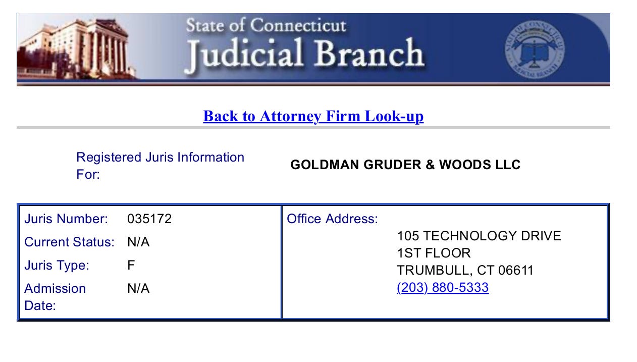 Connecticut JURIS information for Goldman Gruder & Woods, LLC