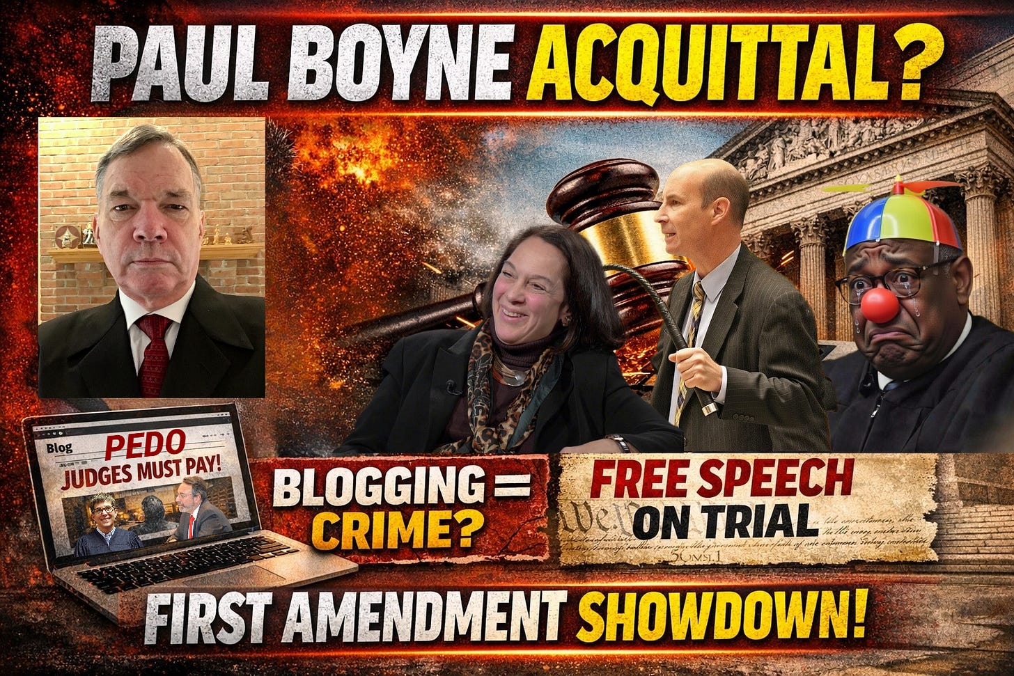 LUTHMANN NOTE: The above video features Professor Eugene Volokh discussing the issue of required mental state and criminal true threats, which the U.S. Supreme Court resolved in Counterman v. Colorado. New Haven Superior Court Judge Peter Brown and State’s Attorney Jack Doyle didn’t get the memo. The Paul Boyne case shows exactly how governments try to kill the First Amendment without admitting it. The State could not prove a “true threat” under the Counterman standard. So prosecutors tried something clever: call the speech “conduct.” In other words, the crime isn’t what Boyne said — it’s that he kept saying it. That logic turns journalism into stalking and political commentary into harassment. If a blogger criticizing judges can be prosecuted for a “course of conduct,” then every investigative reporter is one indictment away from prison. Judge Peter Brown’s JURY INSTRUCTIONS went along with the unconstitutional speech/conduct farce. The jury’s decision will say whether the Constitution still means what it says. This piece is “Paul Boyne Acquittal?”