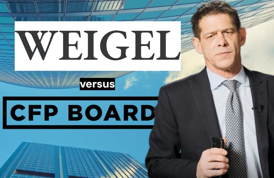 The Certified Financial Planner Board, in Weigel’s view, has revealed its true colors. Rather than defend ethical practitioners and the public, it appears to be wielded as a weapon to silence a whistleblower and shield corrupt institutions.