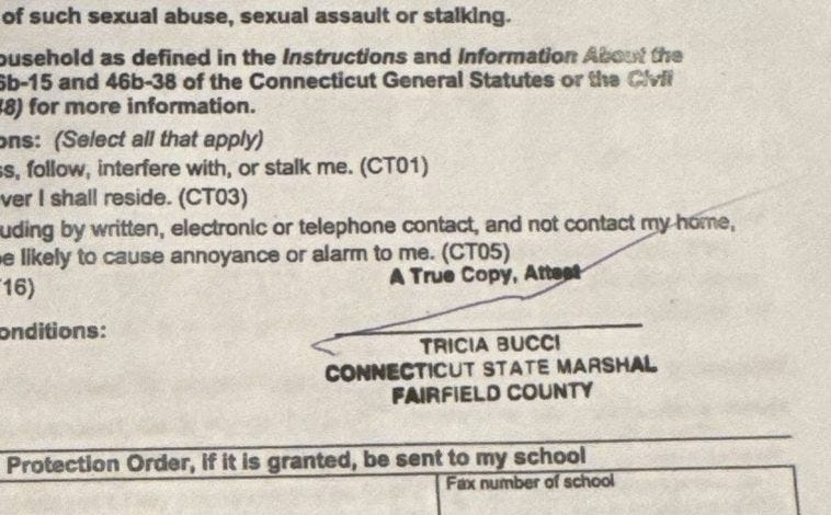 They point to the marshal stamp by Lieto’s cousin, Tricia Bucci, in the rapid ex parte order. The point to the Bucci family, which is also the family of statewide powerbroker Mario Testa, long described as the “Boss” of Bridgeport, politically speaking.