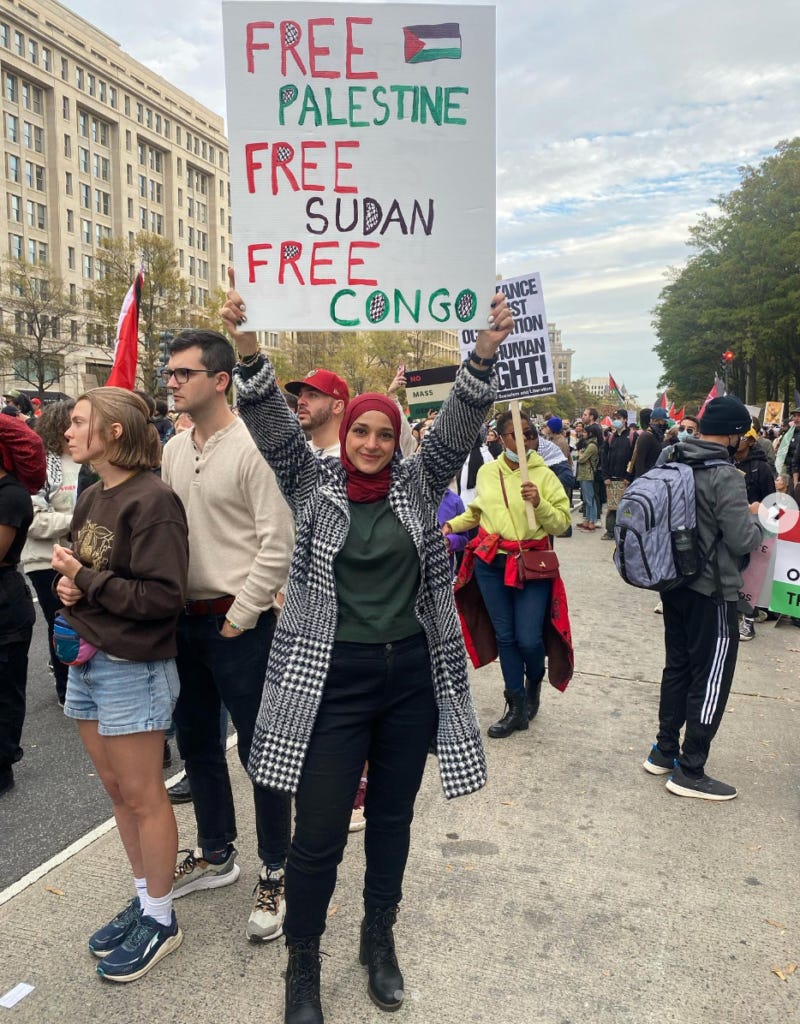 When the stunned wife balks, Masoud doubles down: “I’ll do it if you say ‘Free Palestine,’” she repeats, laughing.