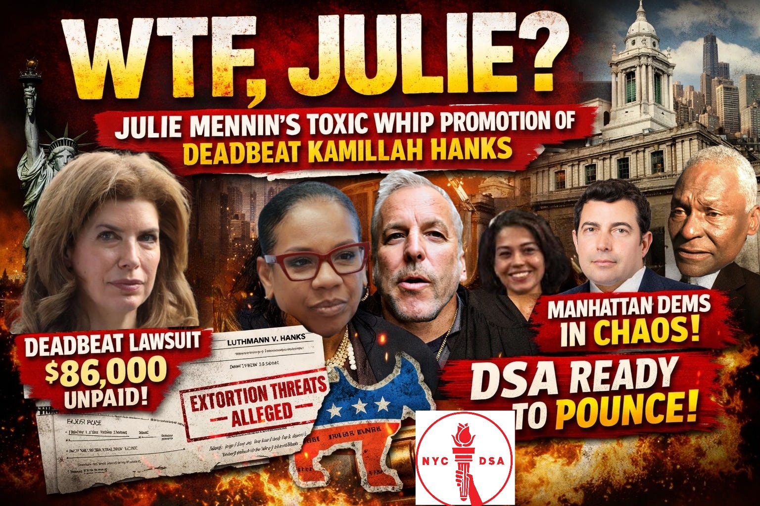 LUTHMANN NOTE: I actually like Julie Menin. I respect her effort to include all five boroughs in City Council leadership. That matters. Staten Island deserves a seat at the table. But leadership isn’t about geography. It’s about judgment. Elevating Kamillah Hanks to Majority Whip without fully vetting the baggage was a mistake. This lawsuit was public. The allegations were known. If inclusion was the goal, there were better options. David Carr. Frank Morano. Both serious. Both capable. Instead, Menin chose party loyalty over prudence. That choice may now cost her — and the Manhattan Democratic establishment — dearly. This piece is “WTF Julie Menin?”